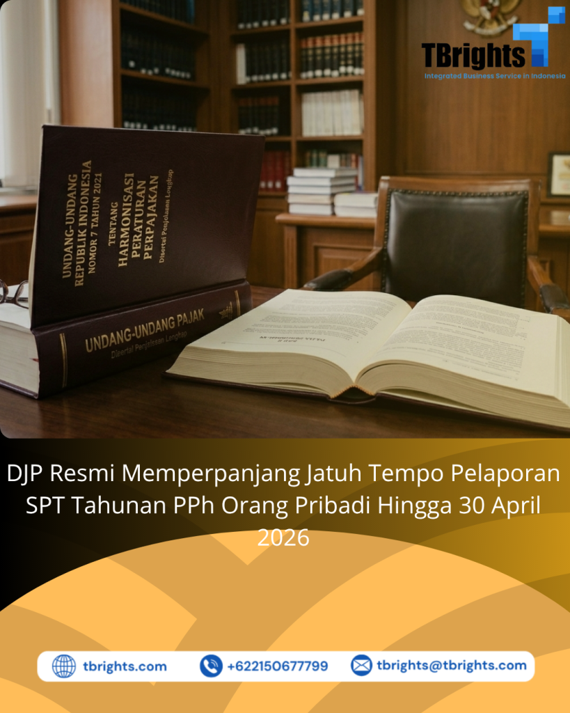 Direktorat Jenderal Pajak (DJP) telah menerbitkan Keputusan Direktur Jenderal Pajak Nomor 55 Tahun 2026 (KEP-55/PJ/2026) tentang Kebijakan Perpajakan Sehubungan Dengan Implementasi Sistem Inti Administrasi Perpajakan Dalam Rangka Penyampaian Surat Pemberitahuan Tahunan Pajak Penghasilan Orang Pribadi Tahun Pajak 2025. Berdasarkan KEP-55/PJ/2026, DJP menghapus sanksi administrasi berupa denda apabila Wajib Pajak Orang Pribadi menyampaikan SPT Tahunan PPh Orang Pribadi melebihi 1 bulan setelah jatuh tempo. Artinya, batas waktu penyampaian SPT Tahunan PPh Orang Pribadi untuk tahun pajak 2025 dapat disampaikan paling lambat 30 April 2026.
