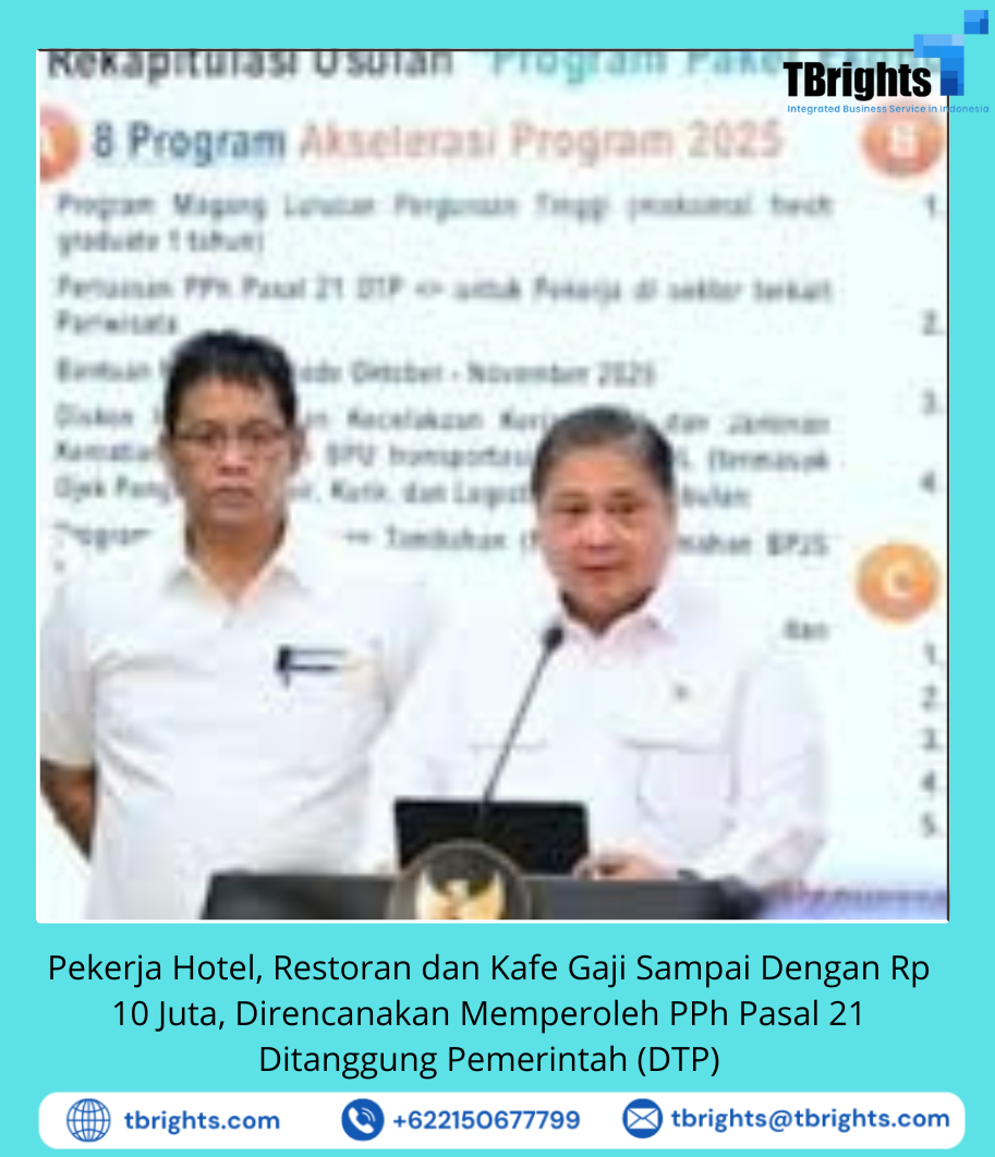 Menurut Menko Perekonomian Airlangga Hartarto “Insentif ini diteruskan ke sektor pariwisata seperti hotel, restoran dan kafe dengan target 552.000 pekerja dan diberikan 100% PPh untuk sisa tahun pajak 2025 atau 3 bulan”. Perluasan insentif PPh pasal 21 ini juga akan diberlakukan pada tahun fiskal 2026 dengan total perhitungan anggaran mencapai Rp 480 miliar. Sebelumnya insentif PPh pasal 21 DTP sudah diberlakukan untuk usaha sektor padat karya dan akan dilanjutkan ke sektor pariwisata yang meliputi hotel, restoran dan kafe. Dengan adanya insentif ini maka pekerja mendapatkan benefit take home pay Rp60.000 – Rp400.000 dan diharapkan dapat menjaga daya beli masyarakat.