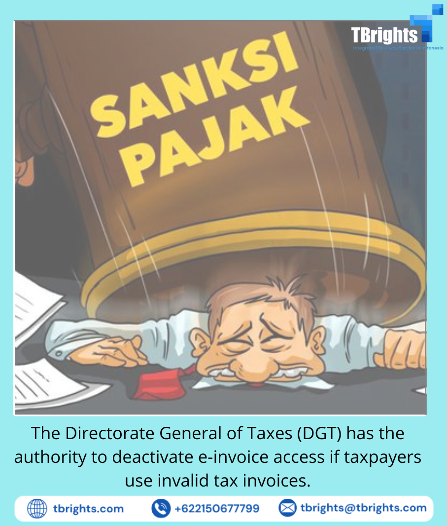 The Directorate General of Taxes (DGT) issued DGT Regulation Number 9/PJ/2025 (PER 9/PJ/2025) regarding the Deactivation of Access to Tax Invoice Creation in the Context of Handling the Issuance and/or Use of Illegal Tax Invoices, which forms the basis for the authority to deactivate access to tax invoice creation. PER 9/PJ/2025 was issued as a supervisory and law enforcement measure against acts that harm the state in the form of the issuance and/or use of invalid tax invoices.